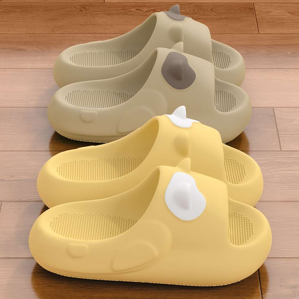 このルームシューズは、かわいらしい動物のデザインが特徴です。