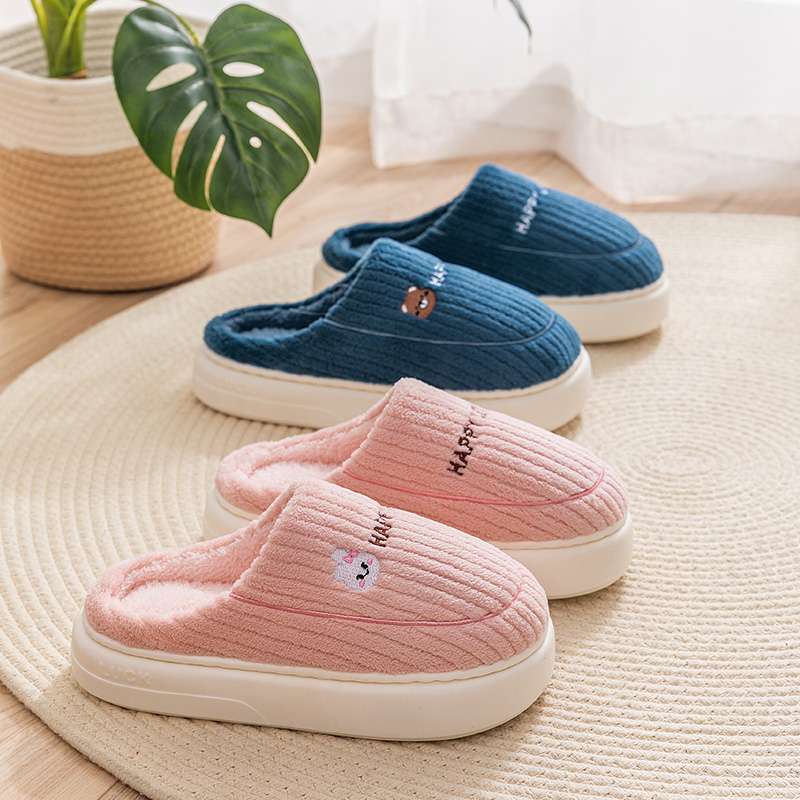 くまさんの顔をモチーフにしたデザインが特徴的なルームシューズです。
