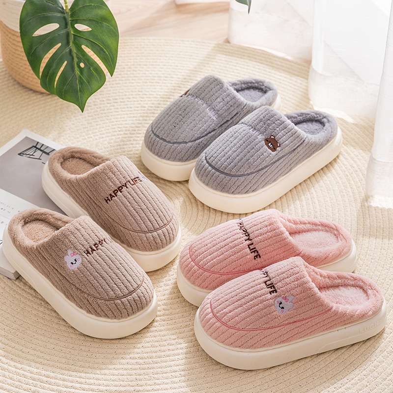 バイカラーデザインの暖かいかわいいルームシューズ
