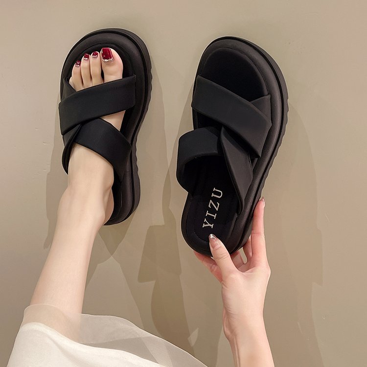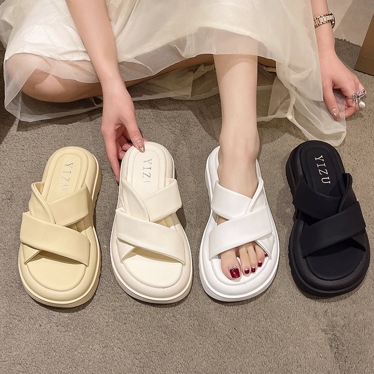 おしゃれな韓国風デザインの女性用厚底スリッパです。 4色展開で、クロスベルトデザインが足元を上品に演出します。 軽量で歩きやすく、室内外問わず使える万能スリッパ。 ベランダでのリラックスタイムにもぴったりです。