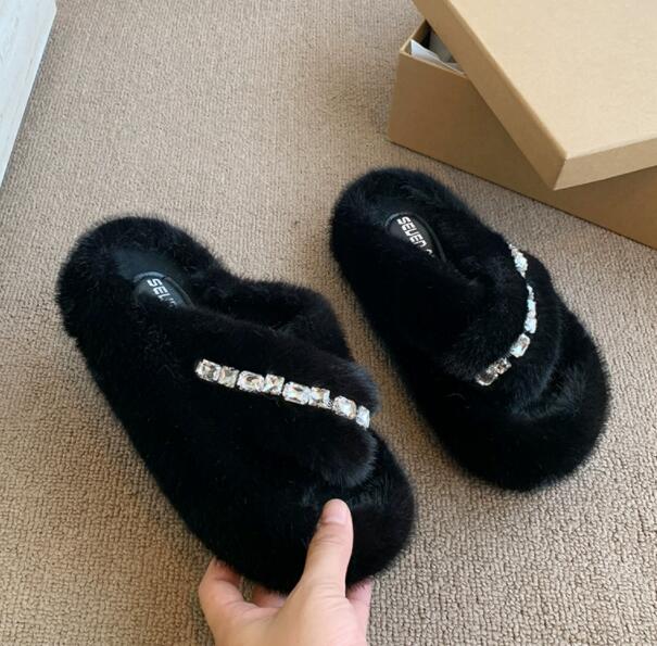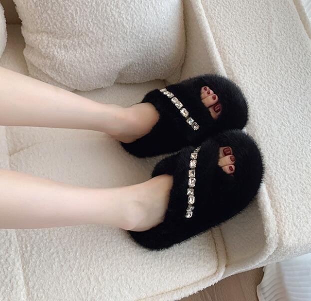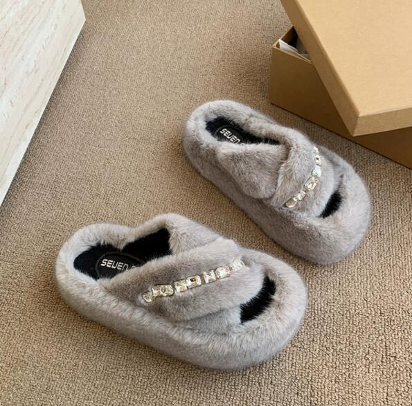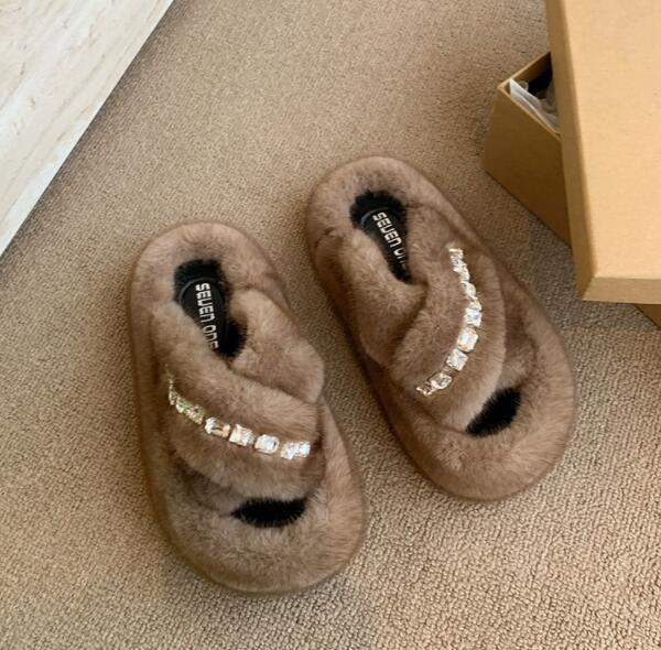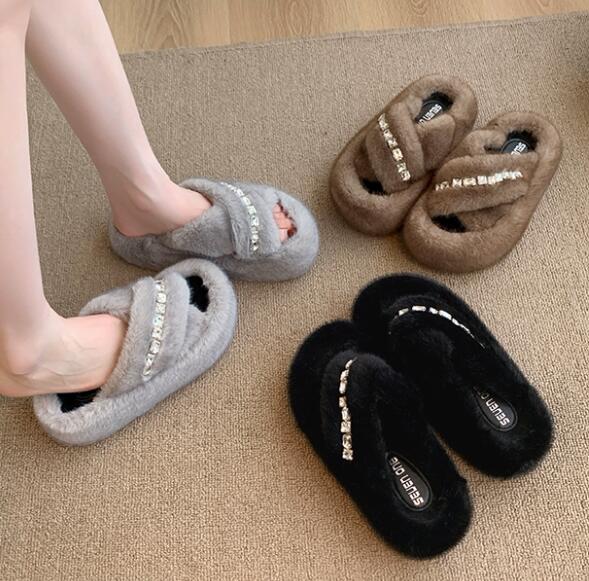 ふわふわのフェイクファーが足を包み込む、暖かいスリッパです。