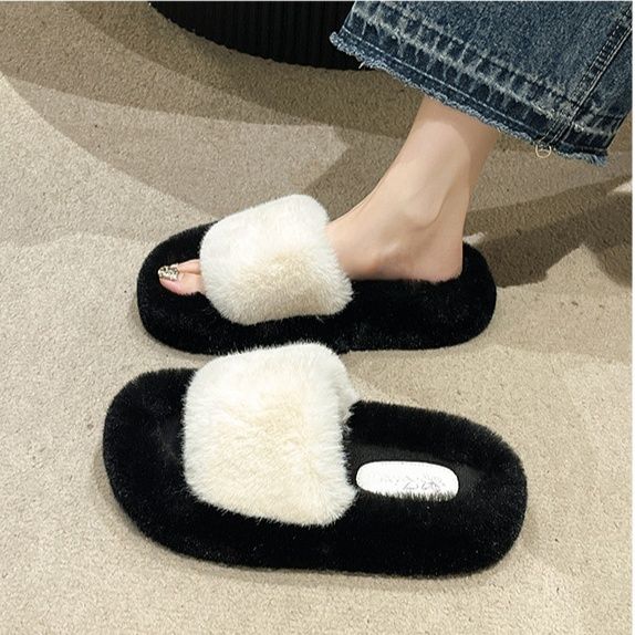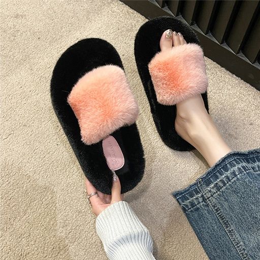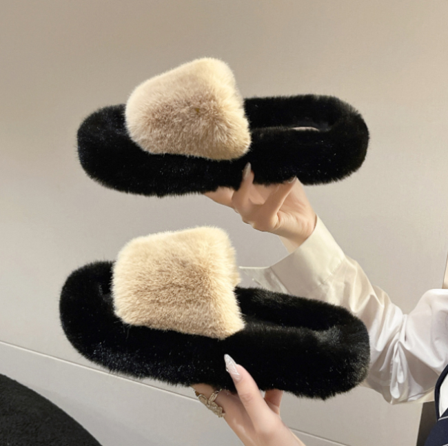 ふわふわの毛足が心地よいファー素材のスリッパです。