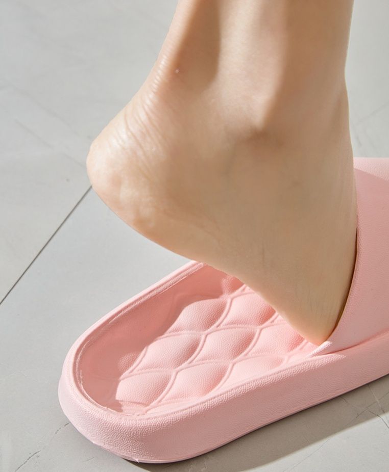 足裏を優しく刺激するマッサージ機能が特徴のベランダ用スリッパです。 菱形の立体的な凹凸が足裏のツボを心地よく刺激し、履くたびに疲れを癒します。 軽量で柔らかな素材を使用しているため、長時間履いても疲れにくい設計です。 幅広の甲部分が足をしっかり包み込み、安定感のある履き心地を実現しました。 ベランダでの洗濯物干しやガーデニング作業など、日常使いに最適なスリッパです。